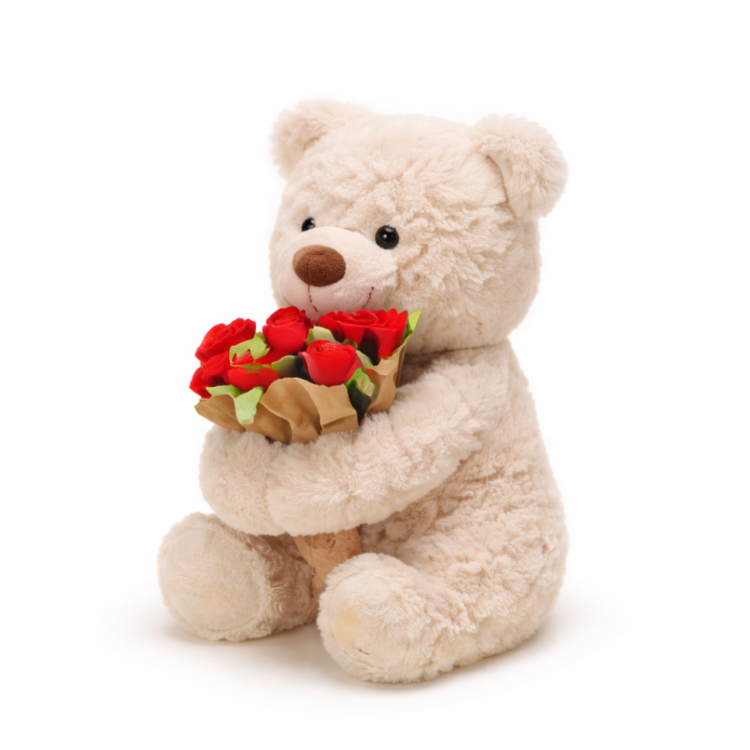 Sí, el osito llega con el ramo integrado y una presentación cuidada, ideal para regalar directamente sin necesidad de preparar nada más.